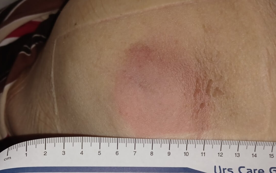 In der ersten Kategorie zeigt sich ein Dekubitus durch eine nicht wegdrückbare Rötung auf intakter Haut. Das bedeutet, dass die Haut bei Druck nicht blass wird (Blanching-Effekt fehlt). Diese Rötung kann auf eine beginnende Schädigung des Gewebes hinweisen und sollte unbedingt ernst genommen werden. Es ist wichtig zu beachten, dass die Haut noch intakt ist.